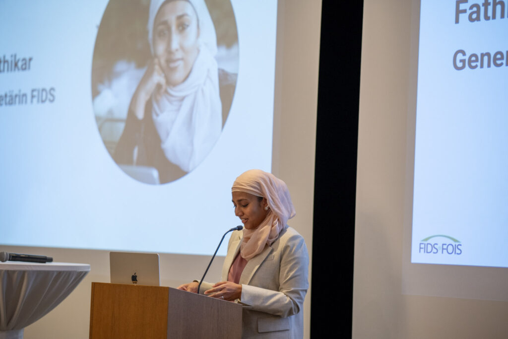 Im anschliessenden Gespräch beantworteten die beiden Nationalrätinnen Irène Kälin und Nina Schläfli Fragen der FIDS-Generalsekretärin Fathima Ifthikar. Dabei ging es unter anderem um gesellschaftliche Wahrnehmungen, politische Debatten und die Herausforderungen, mit denen muslimische Frauen in der Öffentlichkeit konfrontiert sind. Die beiden Politikerinnen teilten ihre Einschätzungen zur aktuellen Diskussion und gaben wertvolle Hinweise, wie muslimische Akteur:innen mit den kommenden gesellschaftlichen Debatten konstruktiv umgehen können. Die Diskussion machte deutlich, wie wichtig offene Gespräche über unterschiedliche Perspektiven sind, um gegenseitiges Verständnis zu fördern.