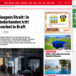 „Nach rund 14-jähriger Debatte ist in den Niederlanden ein Burkaverbot in Kraft getreten. „Gesichtsbedeckende“ Kleidung wie Burkas oder Schleier dürfen nicht mehr in öffentlichen Einrichtungen wie Schulen, Klinik, Ämtern oder auch Bussen und Bahnen getragen werden.“
